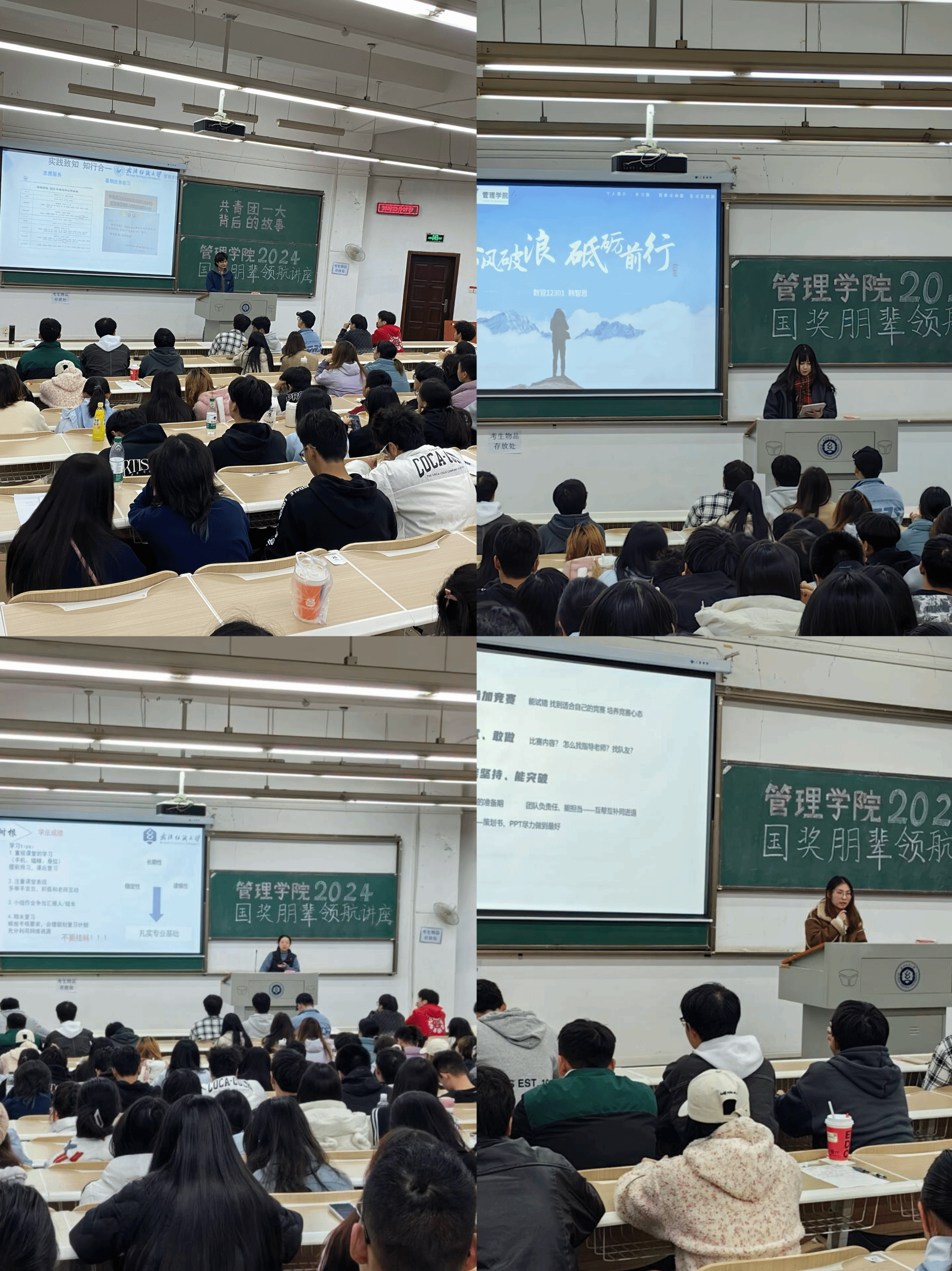 12月8日,350vip浦京集团官网于崇志楼T101教室开展主题为“头雁领航,见贤思齐”的国家奖学金朋辈领航分享会,旨在通过优秀学生的经验和心得,激励管院学子追求卓越,实现自我提升。会议由2024级辅导员许清纯主持,2024级全体新生参与了分享会。本次分享会邀请了学院2024年四位国家奖学金获得者从不同维度分享了他们的心得体会,为在场学生提供了宝贵的学习机会。