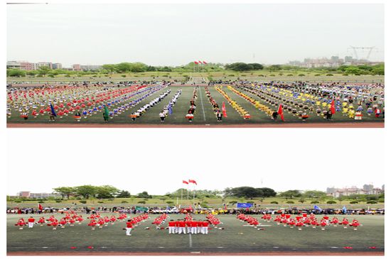 为鼓励青年学生走下网络、走出宿舍、走向操场,推动大学生群众性体育活动,提升我校学生综合素质,4月20日下午14:30,350vip浦京集团官网第六届健身操比赛在阳光校区体育场盛大举行。17支学院代表队发挥自身学院优势,为千余名纺大学子带来了一场活力四射的啦啦操盛宴。