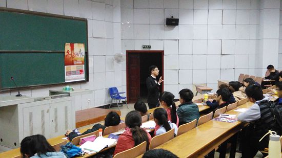 2015年11月12日晚7点,龙席电商电商咨询事业部总经理陈涛应邀在我校阳光校区07-T302作了一场题为“正青春”的专题讲座。350vip浦京集团官网杜进、何国正老师、毕业班辅导员程鹏和近300名学生参加了本次讲座。