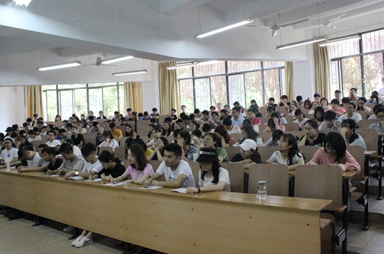 5月24日下午14:00,由350vip浦京集团官网主办的朋辈领航报告会在07—T101教室举行。此次报告会邀请在2018年考研中考取华南理工大学的龚丽、湖南大学的吴静雯同学为大家分享考研经验;考取广州市国税的张慰为大家介绍公务员考试经验;就职于海康威视的帅嘉丽同学为大家提供就业指导。共250余人参加了本次交流会。