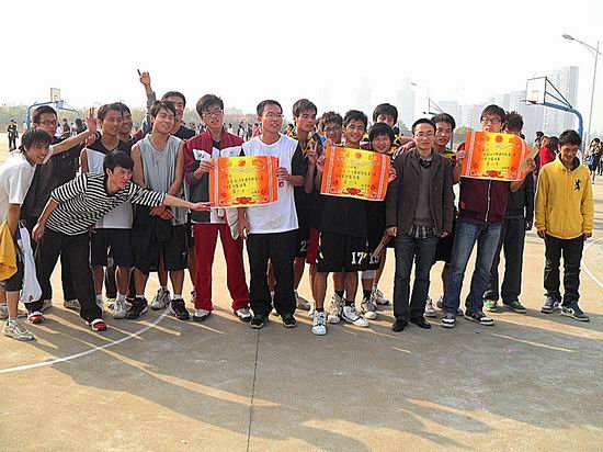 赛后,分团委书记谢超老师为冠亚季军分别颁发了奖状,对他们表示了祝贺,并与两队球员亲密合影。至此,经管院“企业家”杯篮球赛成功落幕。