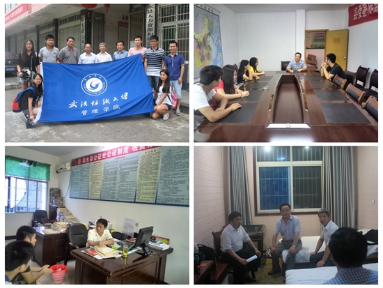 抵达目的地后,师生们不顾夏日细雨立即投入工作,发放调查问卷的同时与当地群众交谈,获得大量真实有效的信息,并走访县委宣传部、司法局、工商局、人社局等党政机关和事业单位,查看了解信息公示制度的实施。在实践调查期间,县委组织部及人社局等单位的领导到实践小组成员的住宿地点进行看望,对实践活动给予支持与肯定,并鼓励和欢迎更多的大学生来浠水县进行实习实训和社会实践。