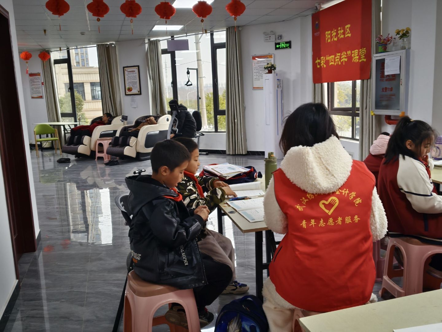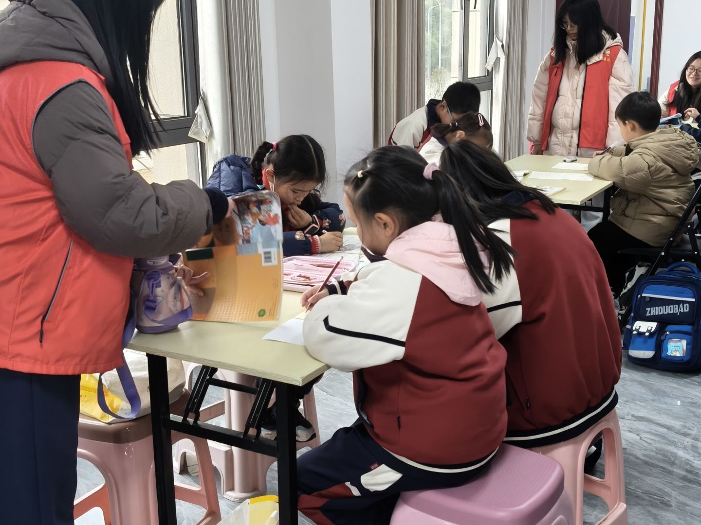 图一为志愿者陪伴小朋友做作业