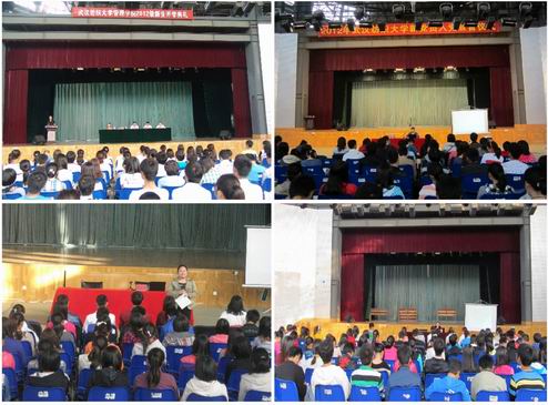 在系列讲座中,湖北名师、院长夏火松教授首先给2012级学生带来了题为“大学生的理想与创新思维”的第一讲,他站在学院全局的高度,希望同学们树立目标、脚踏实地,向目标迈进;树立就业意识,争做中小企业家和管理工程师;分党委书记黄少年教授则详细地给同学们分析了大学与高中的异同,希望他们通过树立独立生活意识、虚心求教、细心观察、大胆实践、认知自我等尽快适应大学生活;分党委副书记肖信华以一个大朋友的身份,围绕“大学生活你我他”,和学子们探讨成长,希望大家在大学中培养自立能力与责任感;“大学是一个自我塑造提升的重要时期,需要设计和规划”,杨卫丰副院长带领同学们进行大学学业生涯规划设计,并提出了许多提升能力的技巧和方法;副院长王济平就如何管理有效学习、把握时间、管理者贡献、用人之长、有效决策等方面进行详细说明,希望大家能“成为一个有效的管理者”。
