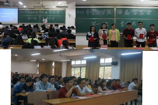 会议伊始,杨老师首先对团学新成员的加入表示欢迎与感谢,在总结并肯定过去一年团委学生会的工作后,对这届团委学生会成员提出三点要求:第一,准确定位,明确职责。学生干部是连接学院与学生的桥梁和纽带,是广大同学锻炼自己、奉献他人、提高自身综合素质的平台,作为学生干部要起到上传下达的作用;第二,严于律己,树立榜样。学生干部要模范遵守和执行学校的各项规章制度,努力学习、积极进取、不断提高自身的综合素质,为周围的同学树立榜样;第三,团结协作,共同进步。团委学生会各部门之间要积极配合,通力合作,学生会的干部要团结各班级同学,调动班级同学们的积极性。接着,学生会主席杨金峰同学上台发言,他希望与所有同学们一起在继承并发扬学生会优良传统的同时,更加圆满的完成任期内的各项工作,同时希望同学们提高自身能力、积极学习、勇于创新、加强锻炼、强健体魄。最后,杨老师给团委学生会主要学生干部颁发这一任期的聘书。至此,本次大会在同学们的热烈掌声中落下帷幕。
