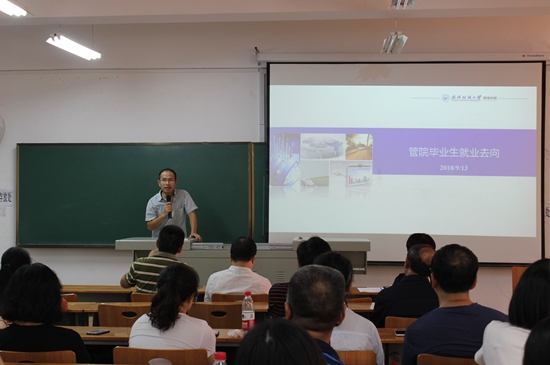 吴锦峰副院长介绍学院本科生培养方案、转专业及专业分流等教学管理政策,让家长提前对学生的学业有进一步的了解;吴金红副院长重点介绍了学院本科招生就业工作,用大数据向家长们展示了近五年来管院毕业生的毕业去向、就业领域、地域流向及单位性质。为落实学院“价值引领、知识探究、能力建设和人格养成”四位一体的育人理念,蒋卫城副书记重点从适应大学生活、综合能力提升途径、生涯规划、心理调适、安全教育等方面与家长进行了深入探讨。