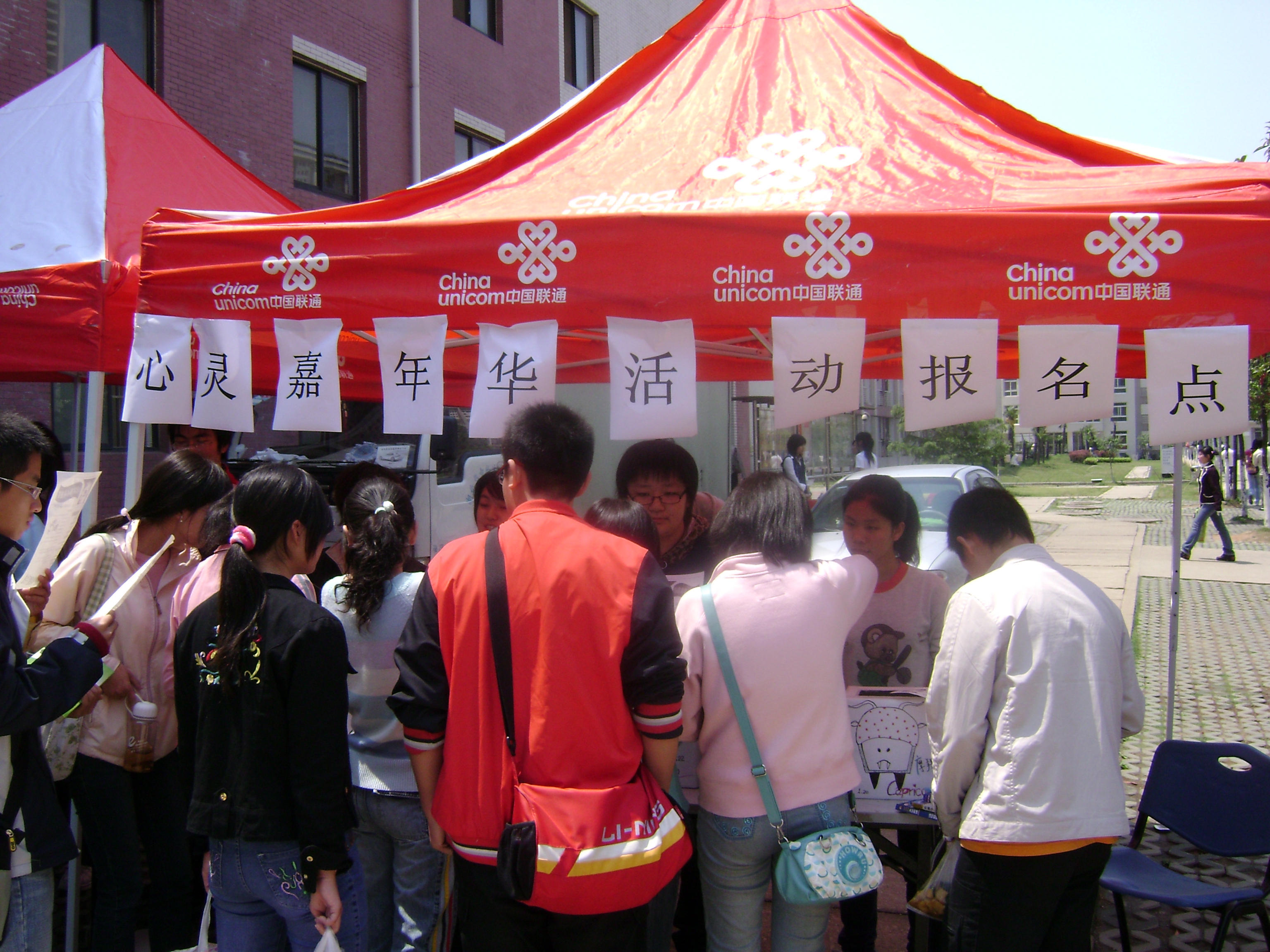 4月18日,由我院青工部举办的心灵嘉年华活动在阳光校区食堂侧门火热进行。