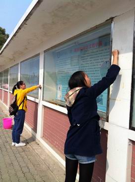 “美化纺大校园,责任从我做起”,3月21日下午,350vip浦京集团官网志愿者们在阳光校区1栋住宿楼前的宣传栏处集合,进行了“消除小广告,美丽纺大校园”的活动。