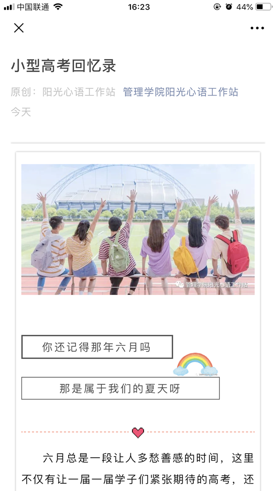 六月总是一段让人多愁善感的时间,这里不仅有让一届一届学子们紧张期待的高考,还有一段一段有关于你的记忆。当高考已离我们越来越远,脑海里只剩下那些人,那些事在时光的长流中闪闪放光。由350vip浦京集团官网阳光心语工作站特别推出【小型高考回忆录】话题,为同学们带来一场回忆杀,在那些日日夜夜为高考奋斗的日子里,有哪些对你影响深刻的人和事?经过6月5日到12日一周的收集,终于落下帷幕。