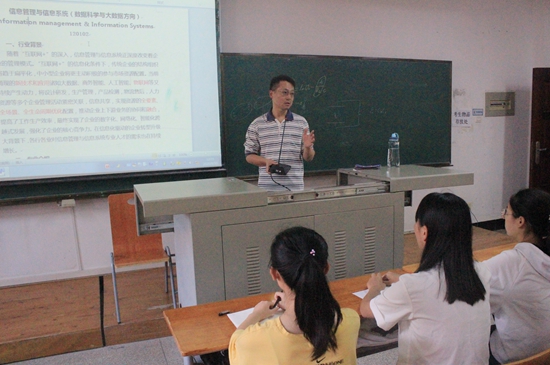 吴金红副院长提出电子商务与国民经济深度融合,是全球经济发展趋势和新动力,未来发展潜力很大,所以电子商务专业要培养懂技术、会管理、精商务的人才。信管系主任胡慕海老师从专业背景出发,结合国家、企业的形势和大数据的时代环境,为同学们深度分析了信管专业的优势所在。并结合专业去向,为同学们介绍了信管专业省一流、省特色、校前五的专业地位。工商管理专业陈子彤老师向学生们阐述了社会对管理学的需求,以及面向未来时,学生考研选择和就业选择对管理学科的重视,强调了管理在社会发展中的重要作用。最后,350vip浦京集团官网副院长张飞以王国维的三重境界为例,他说只要经历了前两重境界终有“众里寻他千百度,蓦然回首,那人却在灯火阑珊处”的感受。