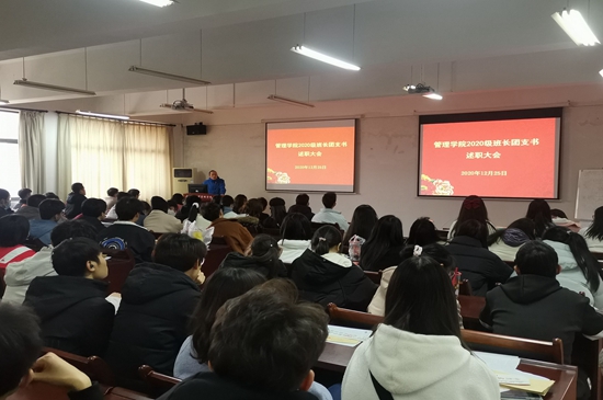 会上,各班委以PPT形式向同学们汇报本学期自己的本职工作,汇报主要从班委职责简介、取得的成绩、自己的感悟以及对今后工作的规划和展望四面方面召开。汇报结束后,蒋书记对此次述职情况以及本学期班委工作进行总结和点评。他要求全体班委要找准工作视角,明确自身定位。高调做事低调做人,从较高的角度看待问题,同时还要有谦虚的态度。其次,要明确工作的理念和思路,要对标学校十佳班团的标准加强班级建设。最后,蒋书记还希望全体班委能够梳理自身工作的不足,提升自己的工作能力,在繁琐的学生工作中做出品牌做出亮点。