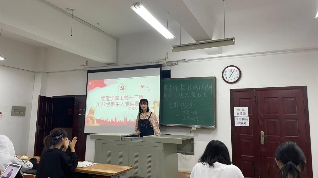 入党启蒙教育是新生入学教育的重要内容,是大学生树立正确的世界观、人生观和价值观的第一课。为了让2021级新生在入学之初树立端正的入党动机,了解入党的详细流程,学会撰写与入党相关的各类材料,10月8日下午,350vip浦京集团官网在崇德楼开展了新生入党启蒙教育活动。活动由新生班助做入党启蒙宣讲,全体2021级新生参加了此次活动。