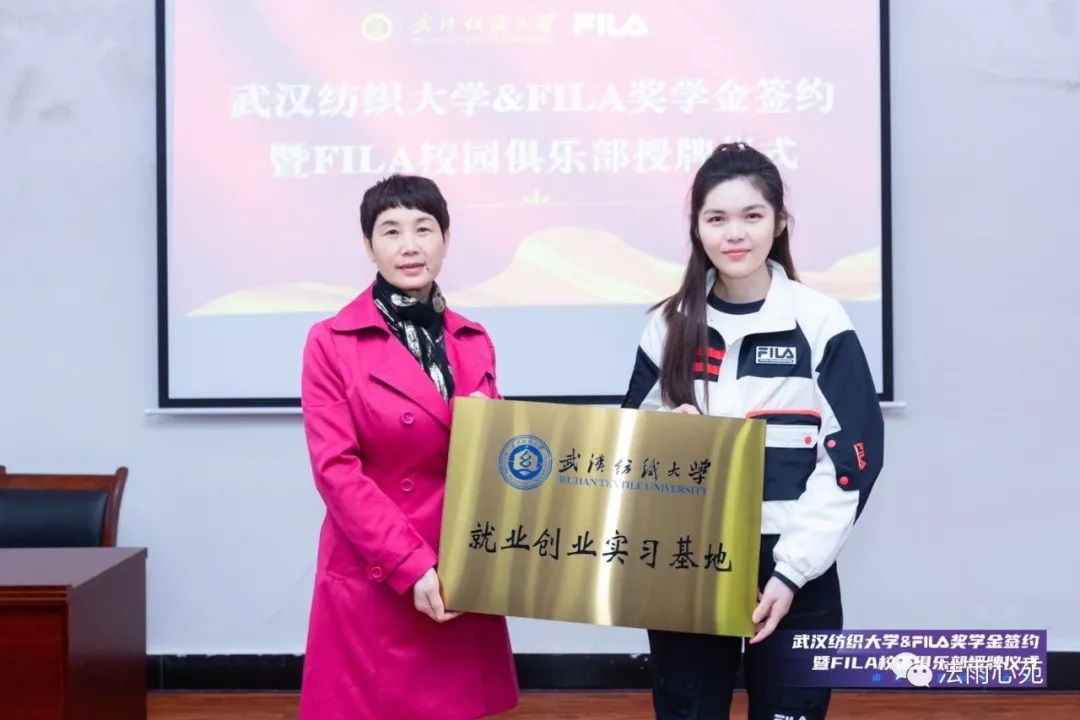 接着,350vip浦京集团官网党委书记腾胜娟、FILA湖北办总监贺玉冰共同为350vip浦京集团官网FILA就业创业实习基地授牌。实习基地的建立,将为更多纺大优秀学子提供多元化的实践机会。