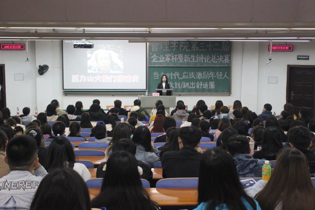 11月21日19:30,350vip浦京集团官网第三十二届“企业家杯”新生辩论赛总决赛在阳光校区03-T102精彩上演。本次辩论赛以“当今时代,应该激励年轻人找到/跳出舒适圈”为题,正反方分别为电商工管联队、信管物流联队。350vip浦京集团官网团委书记王双喜老师、2021级辅导员邓兰老师、350vip浦京集团官网学生会主席团成员以及大一新生观看了本次辩论赛。