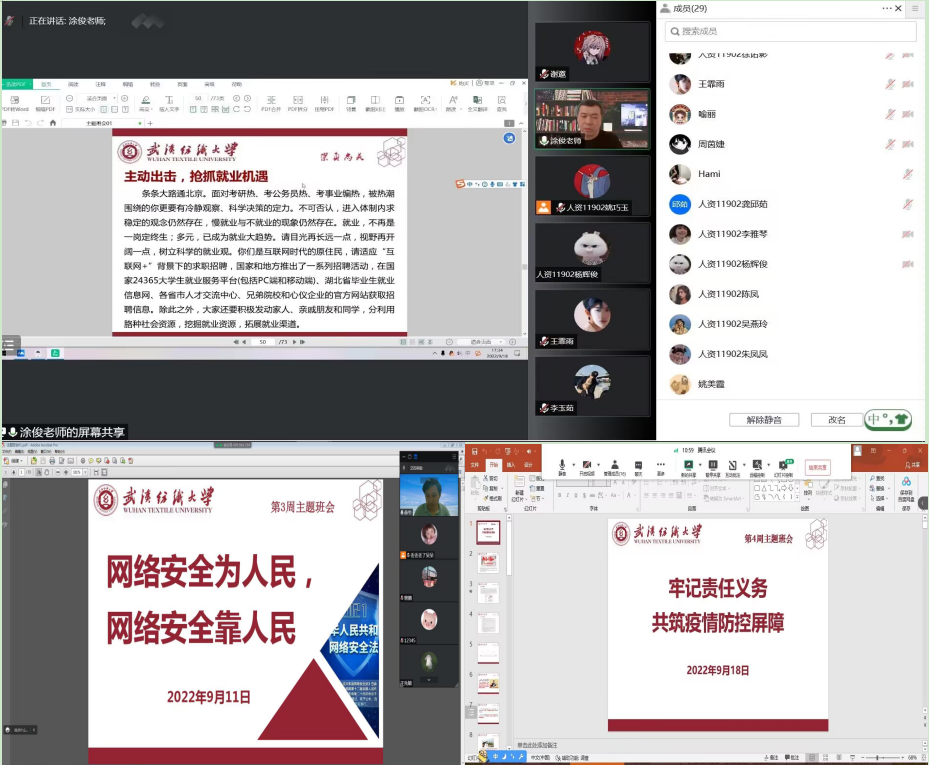 为了更好地开展毕业实习就业工作,提高学生的自我防范意识,加强社会活动能力,保障学生安全稳定工作。9月18日,350vip浦京集团官网组织召开2023届实习就业安全教育主题班会。