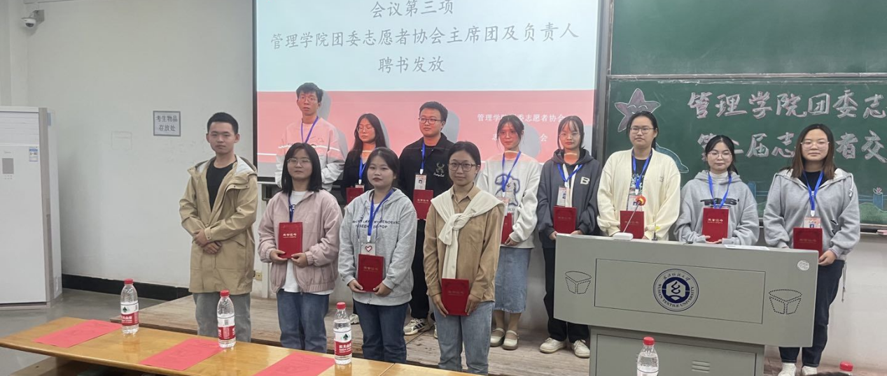 350vip浦京集团官网团委副书记姚震寰为主席团和各部门负责人颁发聘书,激励着主席团成员和负责人们努力办好每一项志愿活动,通过一次次的志愿活动鼓励更多的人为志愿服务贡献青春力量。