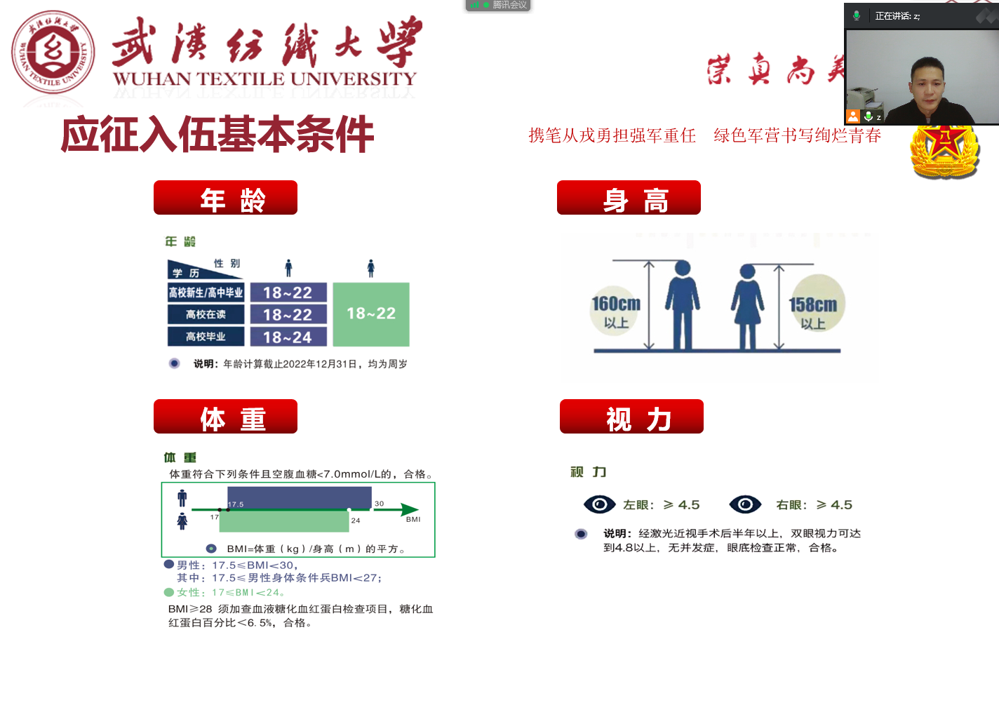 “传承红色基因、携笔从戎报国”。为积极响应国家大学生征兵入伍的号召,切实做好学院2023年春季征兵工作。11月27日下午,350vip浦京集团官网通过线上方式开展征兵工作动员大会。学院各年级辅导员、全体男生参加此次大会,会议由征兵联络员张朋龙主持。