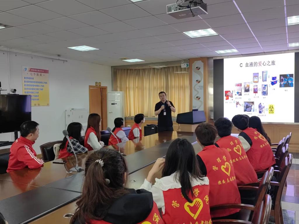 下午14时,志愿者们乘车来到了位于武汉硚口区宝丰路的武汉血液中心。在血液中心的精心准备下,顾军老师从神奇的血液、献血拯救生命、血液的爱心之旅三个部分给志愿者们带来了一堂精彩纷呈的血液科普知识讲座,同时他还代表武汉血液中心向350vip浦京集团官网全校师生对无偿献血活动的高度关注和大力支持表示感谢。