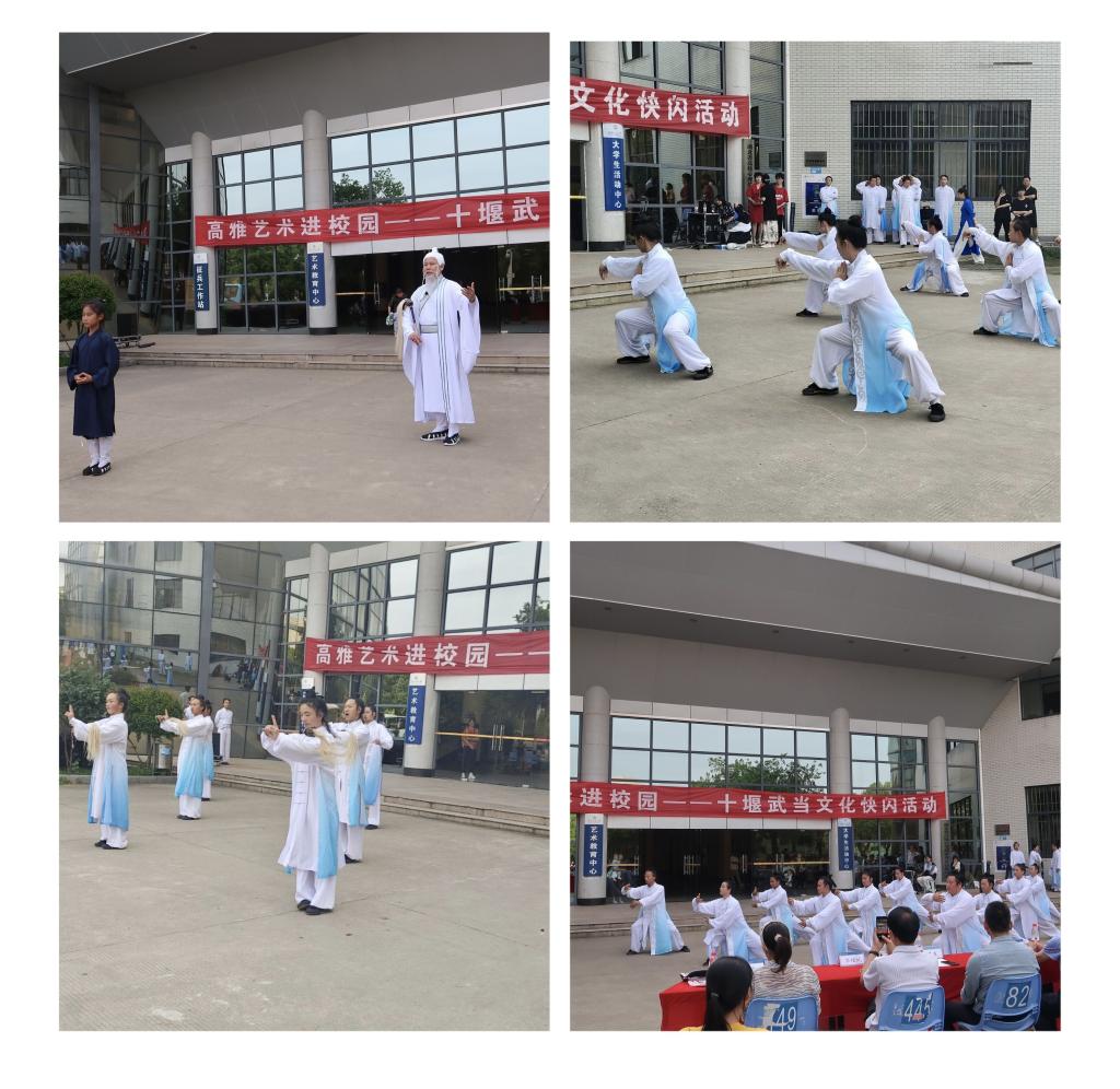 武当山灵,灵通天下。4月21日,由中共十堰市委武当山特区工委宣传部和学校团委联合主办、350vip浦京集团官网承办的“高雅艺术进校园——十堰武当文化快闪活动”在阳光校区大学生活动中心举行。武当山特区工委委员、纪检监察工委书记王俊峰、武当山特区工委宣传部副部长、融媒体中心主任冯开春、武当山特区文旅局局长费利民、武当山特区武汉办事处主任郭理斌、校工会常务副主席肖迪明、学工部副部长夏贤辉、校团委副书记侯畅等领导出席,本次活动吸引了校园内众多学生的关注。