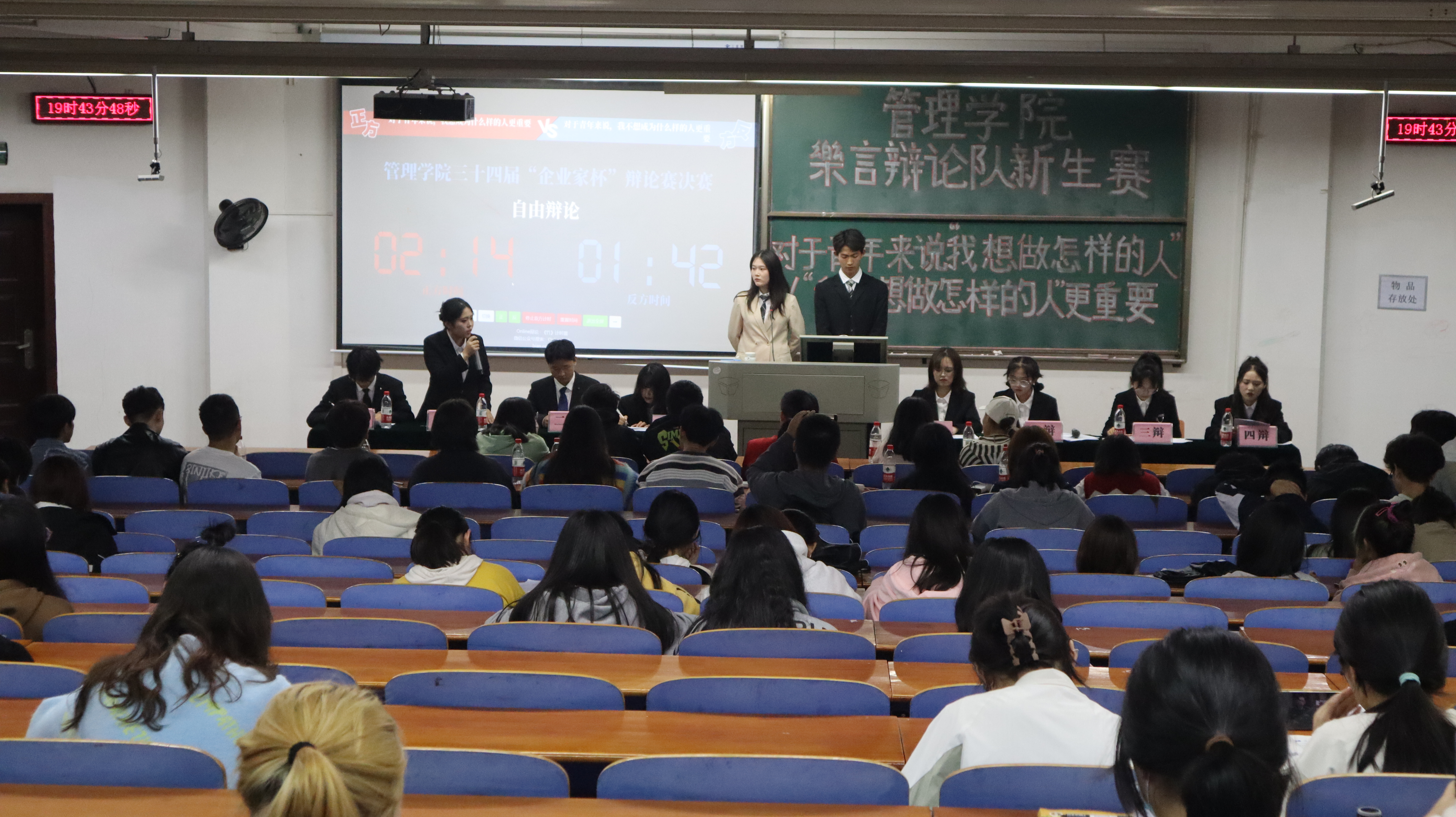11月5日晚,350vip浦京集团官网第三十四届“企业家”杯新生辩论赛总决赛在阳光校区崇志楼T102教室精彩上演。本次辩论赛以“对于青年来说,我想做怎样的人和我不想做怎样的人,何者更重要”为题,双方辩手唇枪舌剑、字字珠玑,整场比赛精彩绝伦。350vip浦京集团官网学工办主任王双喜、学生会志愿者协会主席团成员出席本次活动,各兄弟学院辩论队以及2023级全体管院新生到场观摩。
