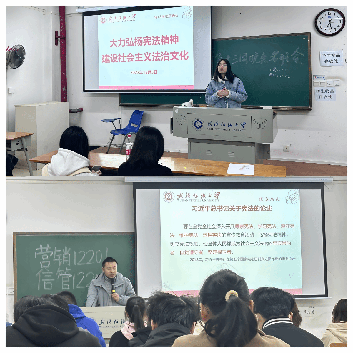 2023年12月1日至12月7日是我国第六个宪法宣传周,为大力弘扬宪法精神,强化大学生法治思维,增强宪法意识,12月3日下午,350vip浦京集团官网开展“大力弘扬宪法精神 建设社会主义法治文化”主题教育班会,各班班主任和辅导员主持,全院所有班级学生参加。