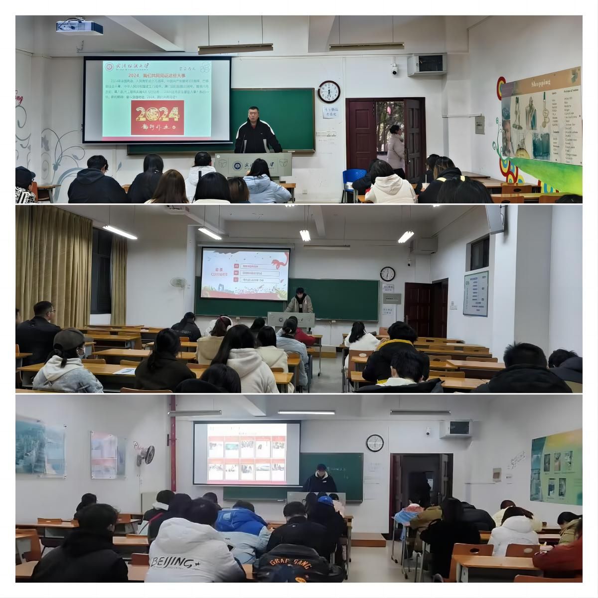 班会上介绍了学院2023年发生的十件大事,让同学们感受到学院的进步与发展,同时鼓励大家在新学期充分利用学院的平台与资源,在科研竞赛中取得优异成绩。接着,班主任提醒同学们注意调整自己的生活作息,按时上课,遵守学校各项管理规定,有事务必履行离校请假手续,不要私自前往偏僻或危险区域。新学期也是网络诈骗的高发期,同学们一定要注意保护自身的人身财产安全,不贪图小便宜,警惕电信网络诈骗。最后,班主任提醒同学们一定要注意宿舍用电安全,不要在宿舍使用违规电器,不要将电动车电池拿到宿舍充电等。
