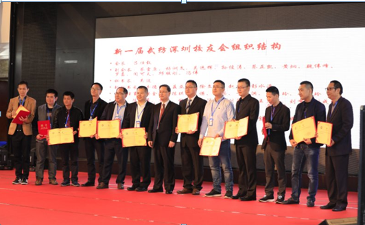 深圳校友分会选举产生新一届理事会:会长吕仕敢,副会长蔡雪原等11人,秘书长吴波,副秘书长牛德明等5人,常务理事杨金铭等7人,理事陈厚勇等19人。新增理事左思思等10人。彭育园为深圳校友分会新任理事会成员颁发聘书并合影。