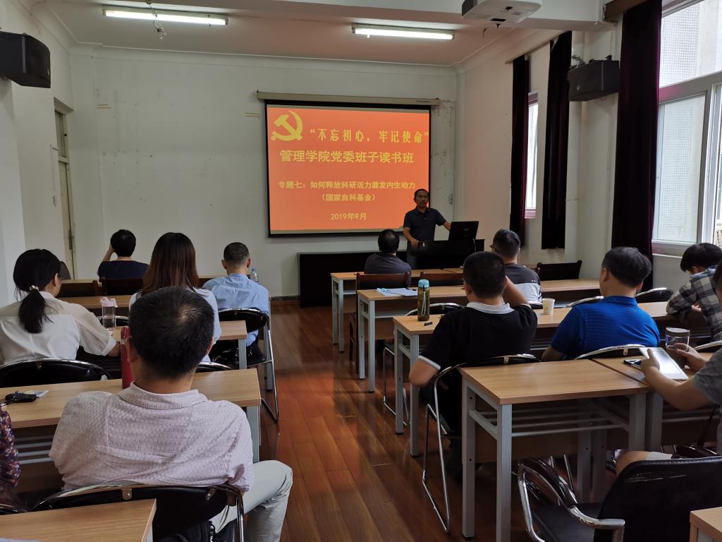 9月27日,350vip浦京集团官网“不忘初心、牢记使命”主题教育读书班举行了第六次集中学习研讨,重点围绕“如何释放科研活力激发内生动力”专题进行交流学习。会议由学院党委书记滕胜娟主持。学院党委班子成员、系办(中心)主任、青年教师代表等参加学习。