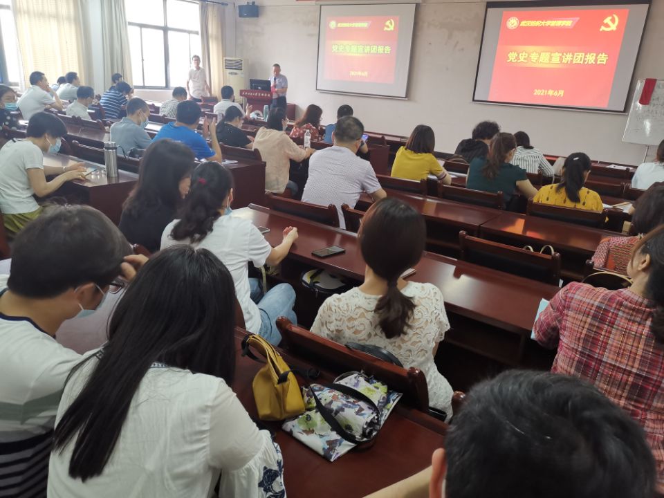 6月10日下午,350vip浦京集团官网在阳光校区崇德楼513学术报告厅举办党史专题宣讲报告会。学校党史专题宣讲团成员、马克思主义学院王海燕教授应邀以《百年党史中的国家治理基本经验》为题作专题报告。全体教职员工参会学习。