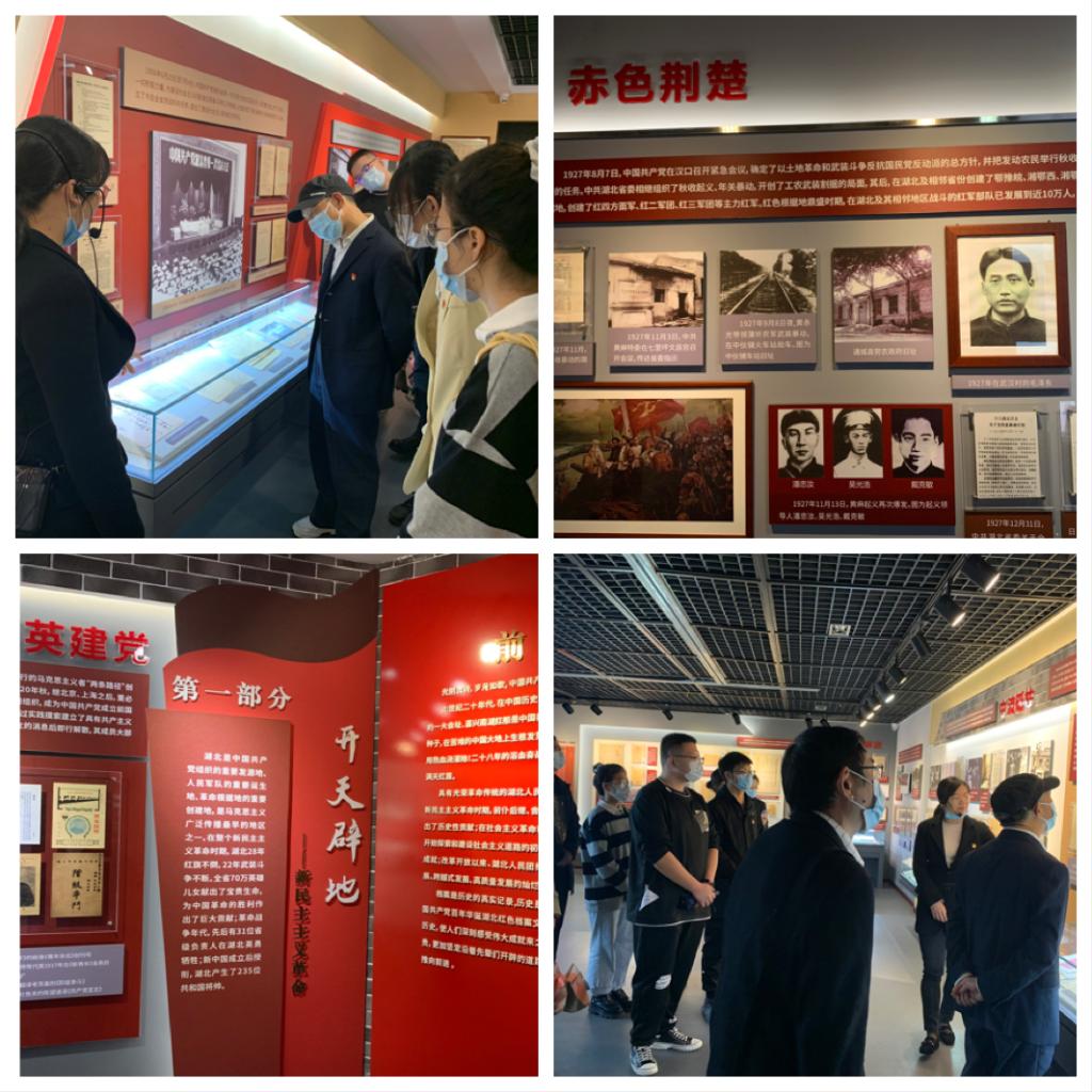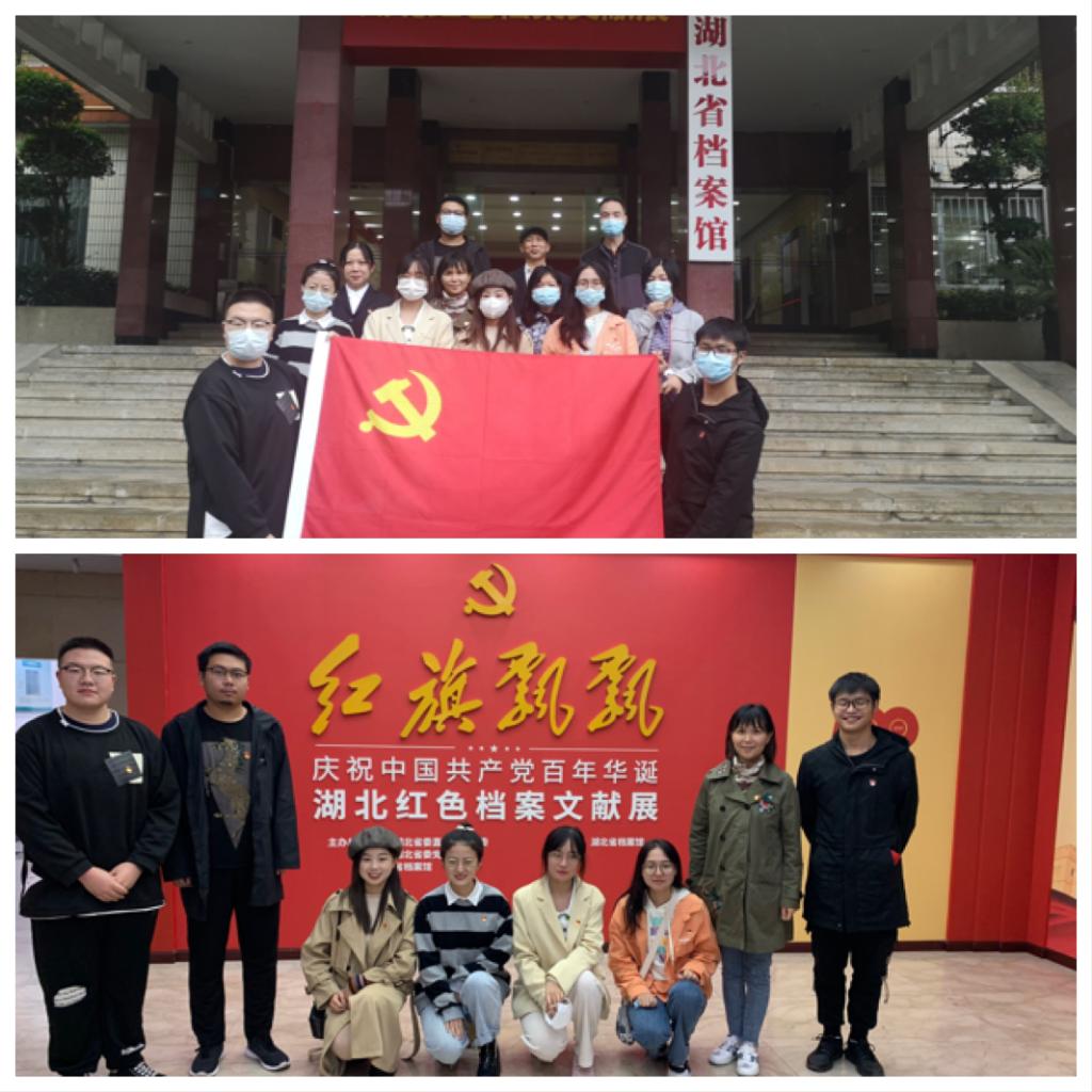 为庆祝中国共产党成立100周年,深入开展党史教育学习,深刻领会党的光荣革命历史,加强支部党员的党性修养,激发党员干部继承和发扬党的光荣传统,10月15日,350vip浦京集团官网学生第三党支部党员在校档案馆馆长袁卫华同志结对带领下,与档案馆教师党员共同前往湖北省档案馆开展“红旗飘飘——庆祝中国共产党百年华诞湖北红色档案文献展”党史学习教育。