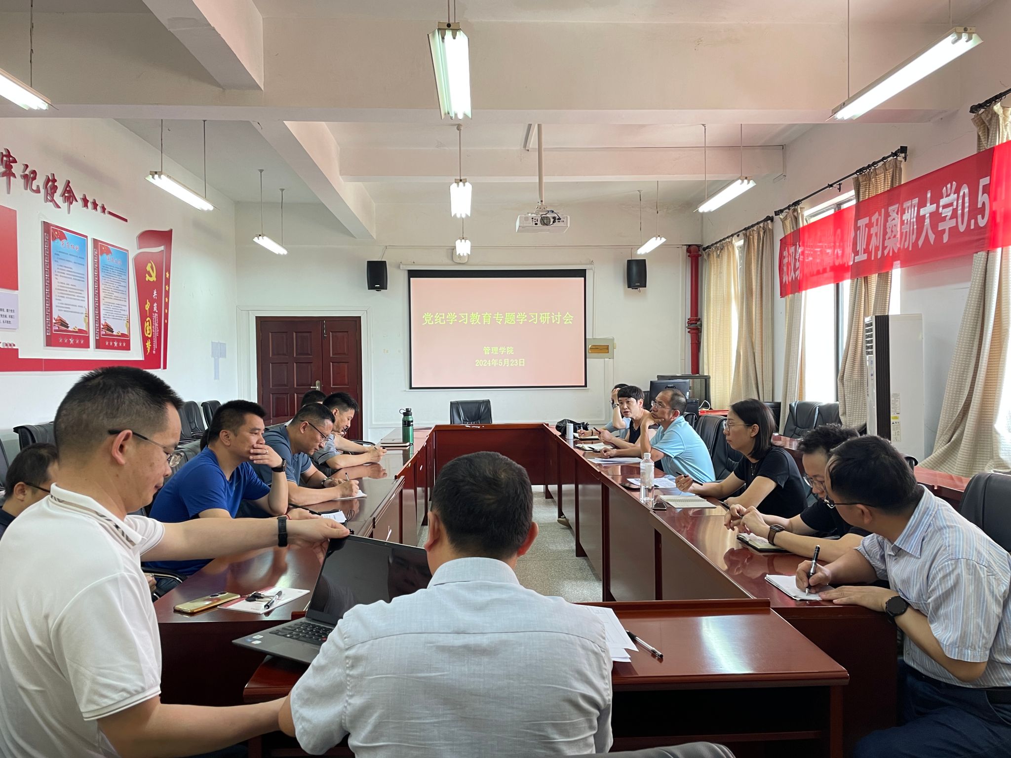 为推动党纪学习教育走向深入,5月30日下午,350vip浦京集团官网召开党纪学习教育专题班,学院党委委员、系(中心、办)主任、党支部书记参会。学院党委书记滕胜娟以《锤炼党性修养 强化责任担当 护航学院发展》为题,做辅导报告。