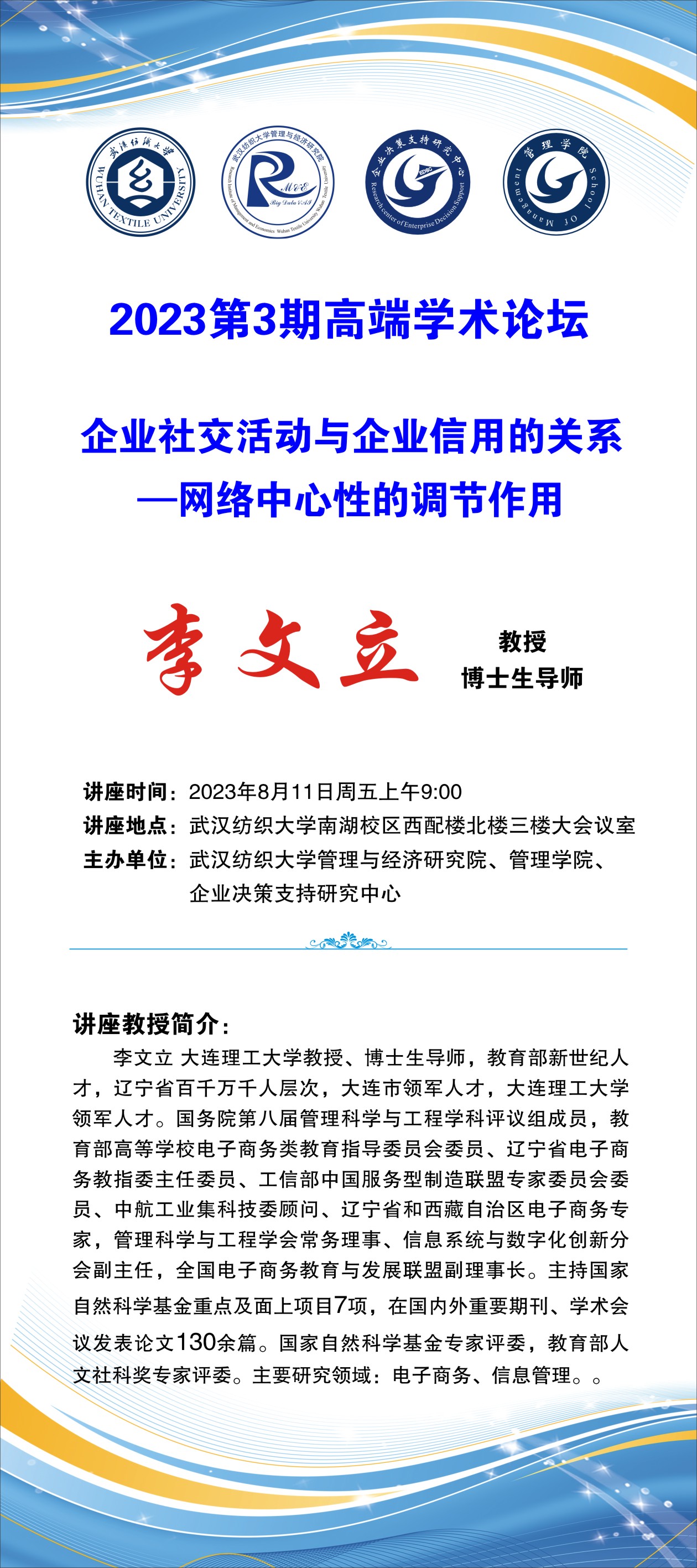 学术预告第437期350vip浦京集团官网:企业社交活动与企业信用关系-网络中心性的调节作用