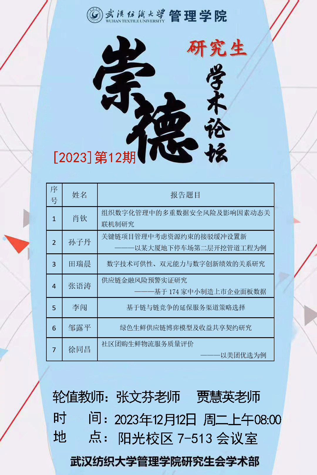 2023第12期研究生崇德“学术沙龙”概览