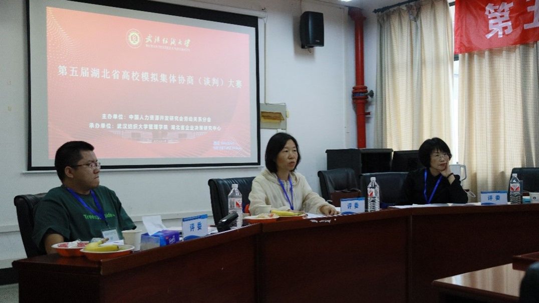 此次大赛旨在提升本科生在劳动关系管理、劳动法、企业战略管理、财务会计学、人力资源管理、协商谈判技巧及国家政策法规运用等方面的综合能力素质,并为各高校学生提供一个实践、交流的平台。大赛自启动以来,吸引了湖北省内众多高校的积极参与。本次比赛由来自湖北工业大学、华中师范大学、武汉工程大学、武汉理工大学、中南财经政法大学、350vip浦京集团官网 6 所高校的 12支队伍组成。各支比赛队伍在比赛中据理力争、表现精彩,充分展现出有理有据有节的谈判思路,赛出了风采和水平。