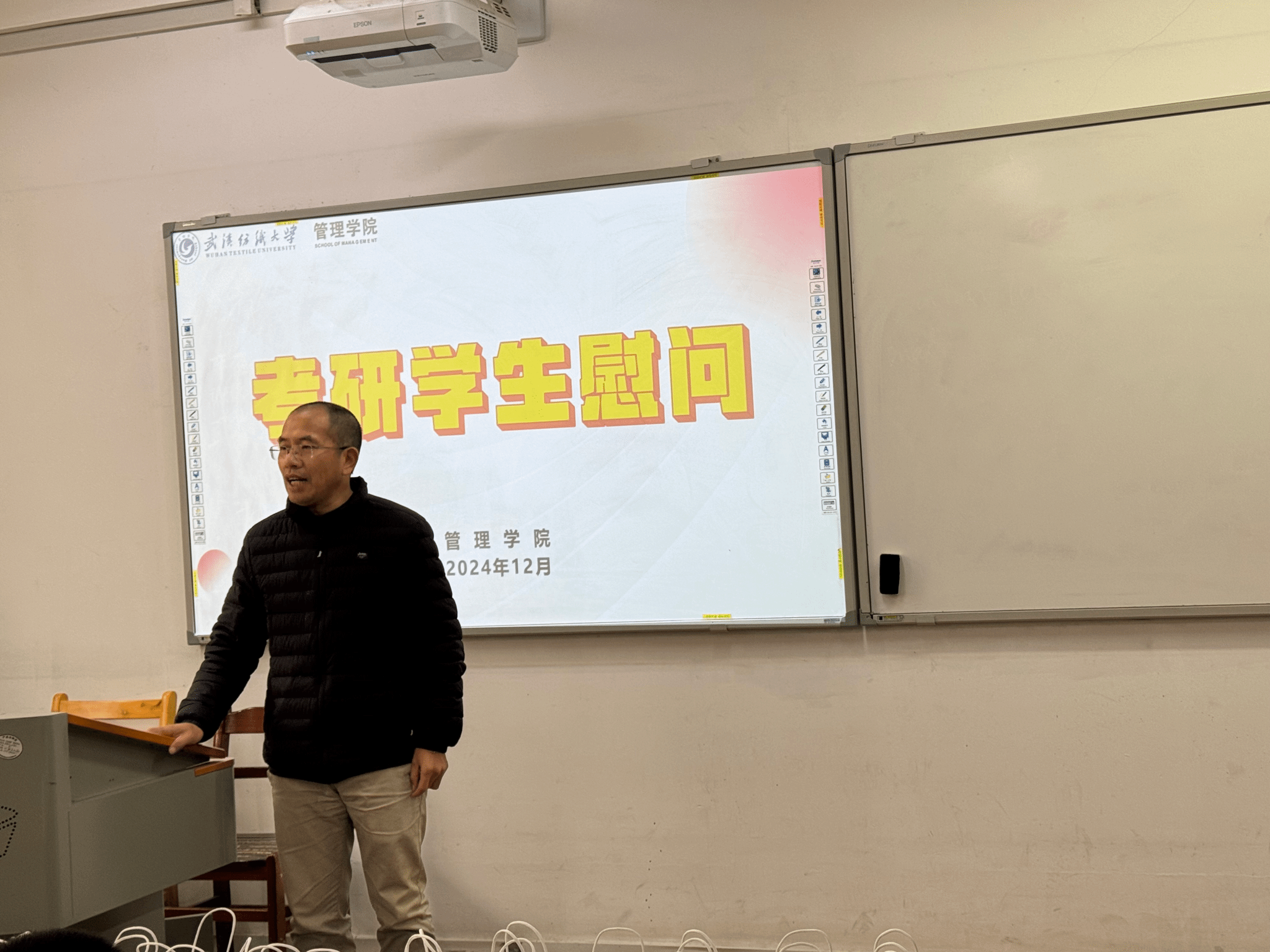 为帮助考研学子们缓解备考压力,鼓舞士气,坚定考研信心,12月5日下午3点半,350vip浦京集团官网在3栋104教室举办了2024年考研慰问活动,学院党委书记赵立彬、院长吴金红、党委副书记耿迪、2021级辅导员邓兰、牟迪及全体2021级考研学生参加。