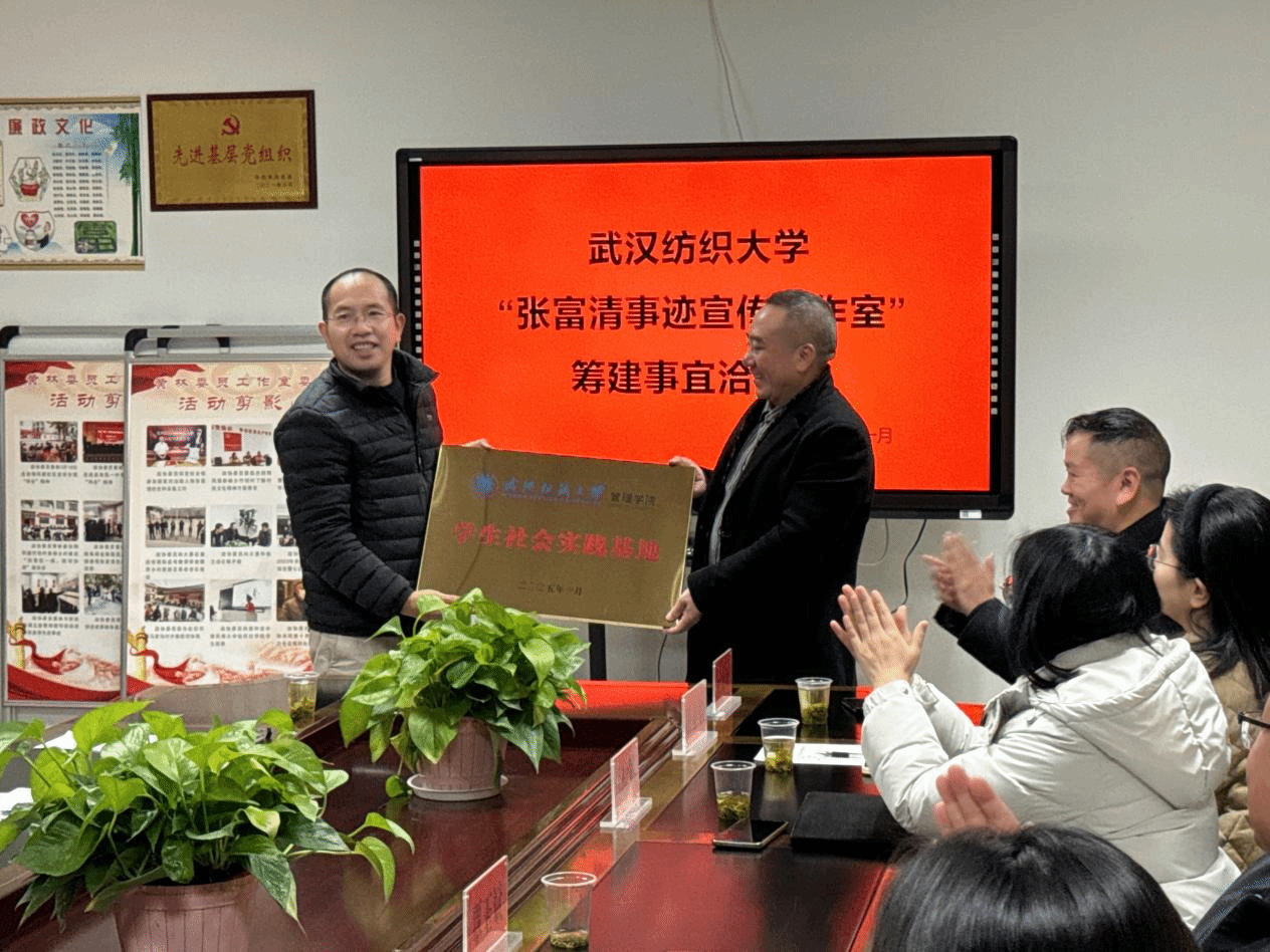 实践队师生与来凤县各部门(单位)就工作室建设、宣传材料整理、宣传模式创新等进行了深入交流,探讨了张富清事迹宣传中的重点难点问题,达成多项合作共识。双方还互赠书籍,并共同为350vip浦京集团官网学生社会实践基地揭牌。