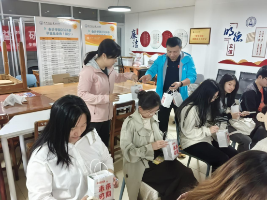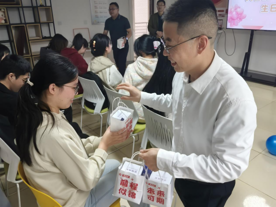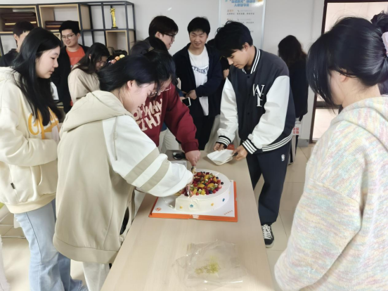 随后,老师们为全体同学发放了学院精心准备的生日礼物。在欢快的歌声中,同学切开生日蛋糕,将甜蜜与祝福分享给在场所有人。