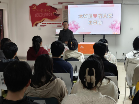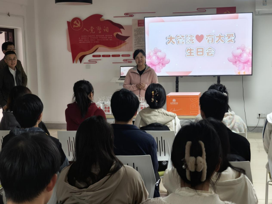 在热烈的掌声中,张莎莎、赵立彬向小寿星们送上真挚祝福,与同学们合唱生日快乐歌,寄语同学们保持好心情,快乐学习、开心生活,鼓励同学们珍惜大学时光,在拼搏中绽放青春光彩,希望每位同学都能平安快乐、学有所得、学有所成。