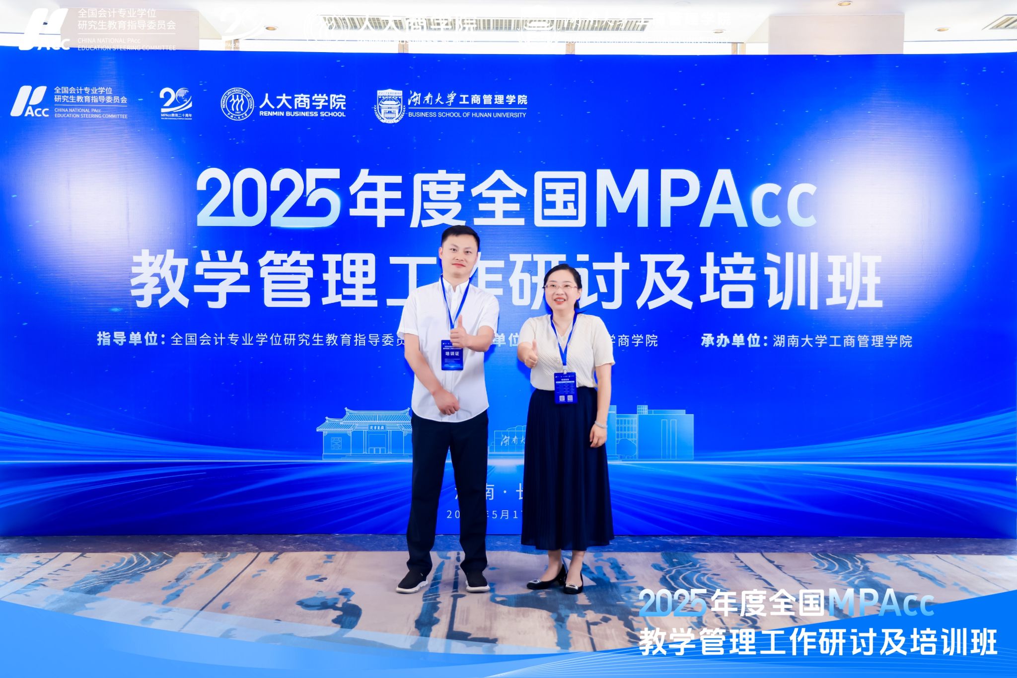 5月17日-18日,350vip浦京集团官网副院长周磊,MPAcc中心副主任任俊霖赴长沙参加由全国会计专业学位研究生教育指导委员会主办,湖南大学工商350vip浦京集团官网承办的2025年度全国MPAcc教学管理工作研讨及培训会。会议围绕“MPAcc教育工作总结与展望、MPAcc项目服务国家战略需求及实现校友关系可持续发展”等主题展开。