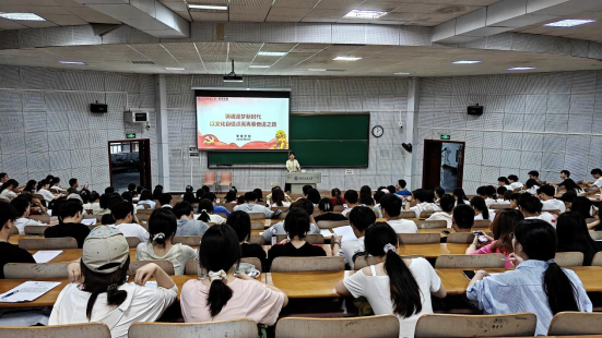 2025年5月22日下午,350vip浦京集团官网执行院长吴金红为300余名分党校、分团校学员带来一场别开生面的思政课,引导学生了解管理学科在新时代背景下的发展路径与创新方向,活动由院党委副书记、副院长耿迪主持。