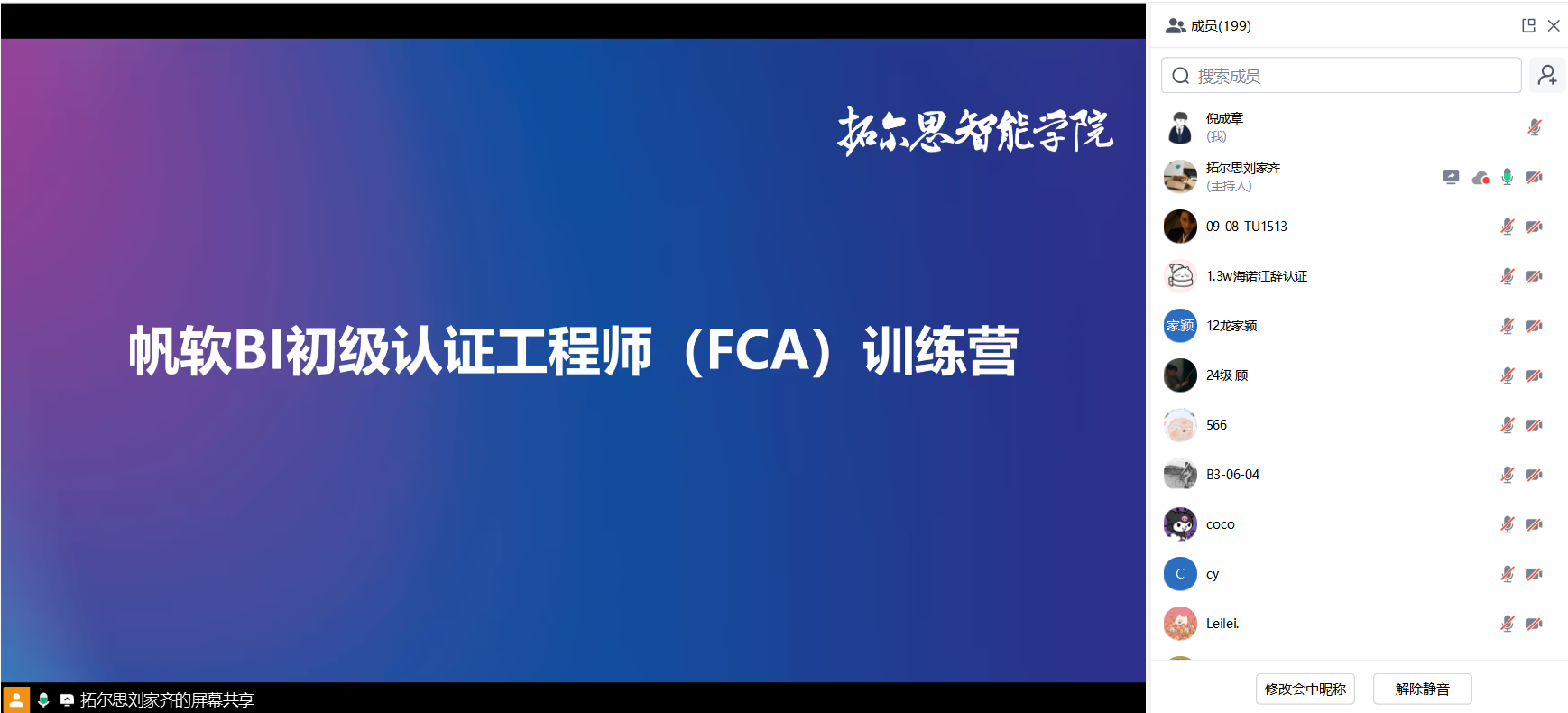 大数据管理与应用系主任陈勇跃教授在开营时寄语大数据管理与应用专业学生:“大二是专业能力的‘筑基期’,数据可视化是连接数据与决策的‘最后一公里’。帆软FCA工具的学习,将为未来进阶学习筑牢基础。”帆软公司教研负责人线上同步解读实训目标,本次实训聚焦“项目实践 - 零售服饰案例”,从报表设计到仪表盘搭建,围绕零售服饰业务场景,循序渐进培养可视化思维,让同学们能将数据可视化技能融入实际行业需求。