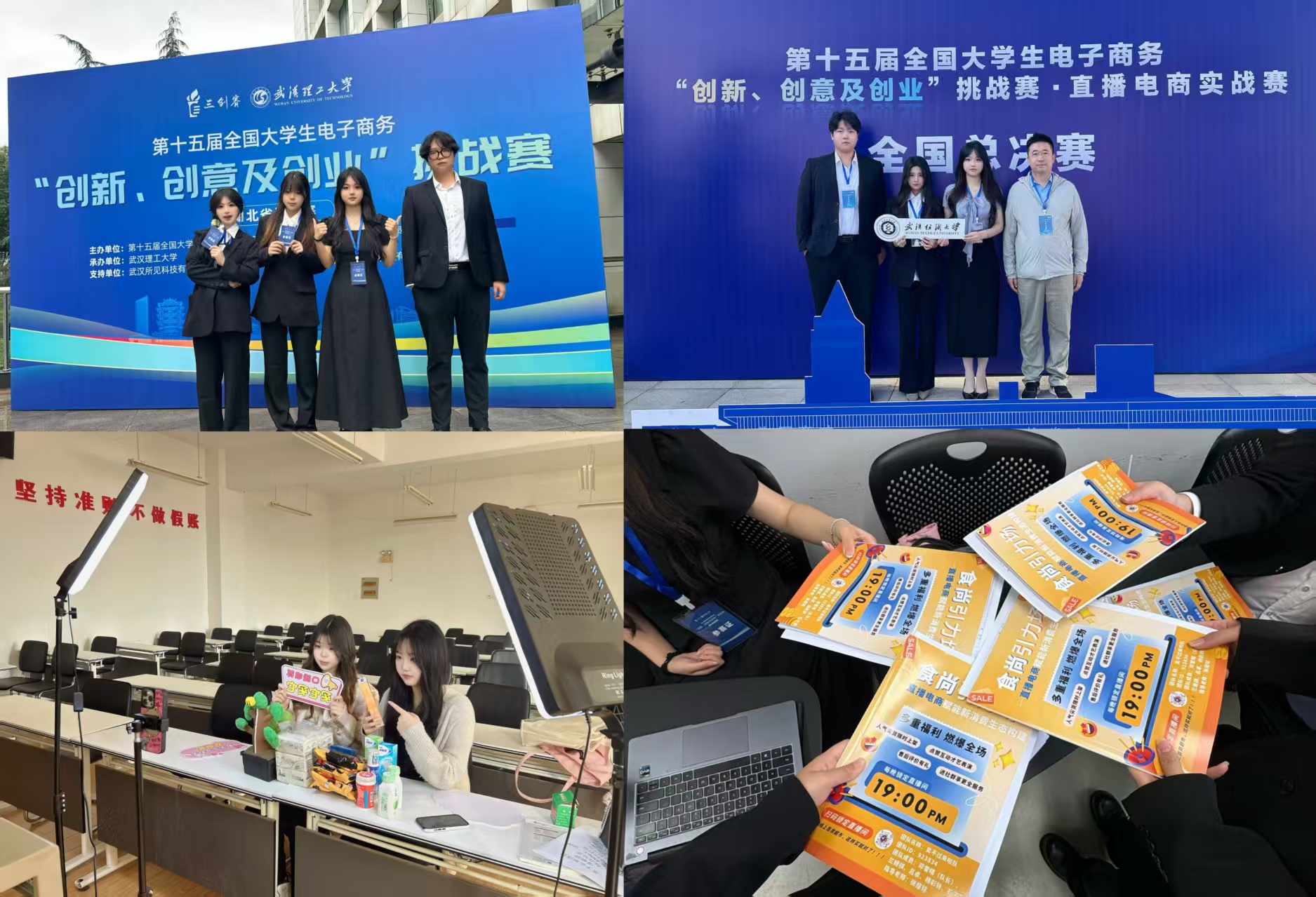 在这一全国性赛事中,350vip浦京集团官网邓雪晴、吕卓、石千慧三位同学,联合湖北经济学院兰娅祺、湖北民族大学杨彩铃组成《食尚引力场——直播电商赋能新消费生态构建》项目团队——“卖不过来啦队”。团队成员密切协作,深度融合电商运营、直播策划、内容创作与技术支持等多领域优势,经过七个多月的直播带货实战运营,累计发布原创短视频562条,微信视频号总播放量达5万次,抖音平台总播放量突破70万次,完成53场高质量直播,最终斩获全国总决赛一等奖,创造了350vip浦京集团官网在三创赛直播电商实战赛道的最好成绩。同时,指导教师张座铭副教授荣获“优秀指导教师奖”。