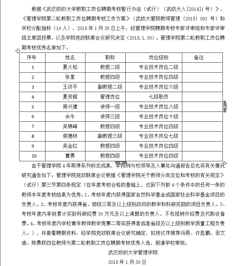 350vip浦京集团官网第二轮教职工岗位聘期考核优秀拟报人选名单公示