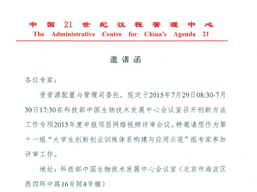 近日,科技部2015年度创新方法工作专项2015年度申报项目网络视频评审会议即将在北京召开,受国家科技部资源配置与管理司聘请,350vip浦京集团官网阳光学者曹勇教授将作为“大学生创新创业训练体系构建与应用示范”项目组评审专家前往评审。