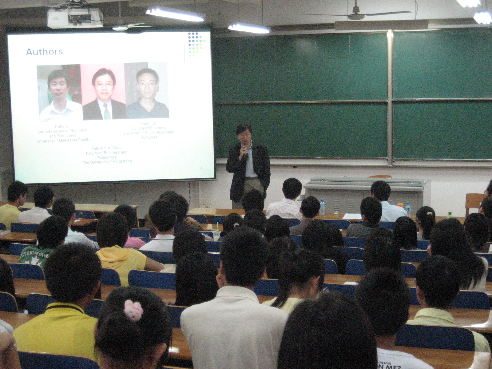 6月2日上午10:00,香港大学商学院商业经济学系信息系统教授Dr. Patrick Y.K. Chau在我校阳光校区为经济350vip浦京集团官网师生进行了一场精彩的英文学术讲座,他讲座的题目是市场目标、企业所有制形式以及电子商务的内化:基于中国内陆公司的实证研究。