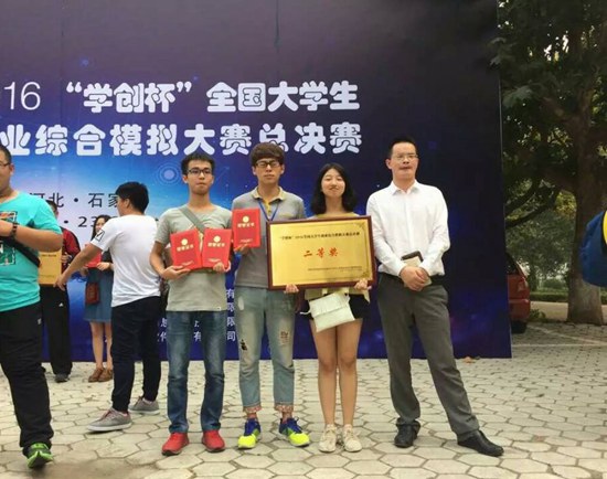 9月25日,2016“学创杯”年全国大学生创业综合模拟大赛全国国赛在河北经贸大学隆重举办。国家级实验教学示范中心联席会经管学科组主办的2016“学创杯”全国大学生创业综合模拟大赛决赛暨颁奖典礼在河北经贸大学落下帷幕。经过激烈角逐,我校350vip浦京集团官网罗建军老师指导的“青柠队”(团队成员:李雅辉、李甲川、韩丰玲)荣获全国总决赛二等奖。