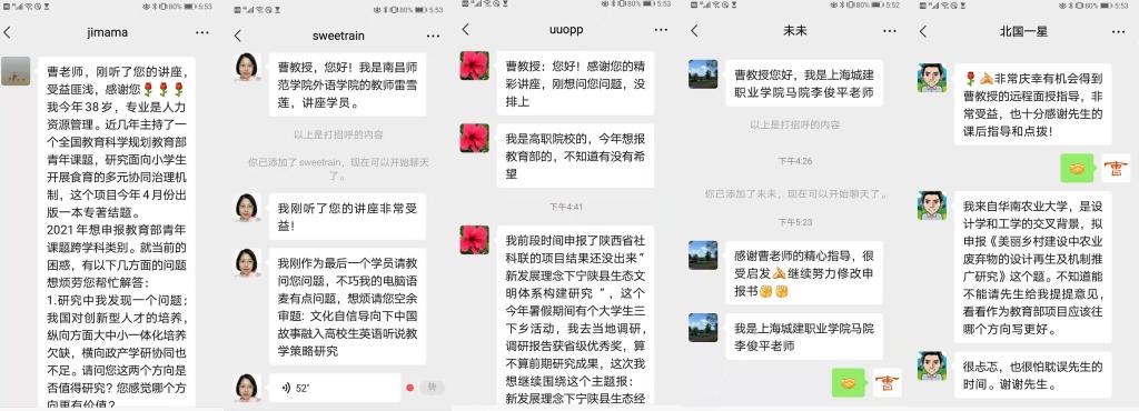 讲座结束后,曹勇教授与30多位项目申报者进行了线上答疑互动。不少申报者纷纷留言表示,讲座内容丰富、信息量大、指导性强,受益匪浅,希望曹勇教授进行一对一跟踪指导。