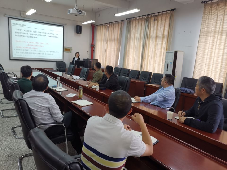院长助理杨筝博士从“十三五”研究生工作情况、“十四五”发展思路与目标、困境与机遇、任务与举措、支撑与保障等方面,对学院学科建设发展及研究生相关工作进行了详细汇报。
