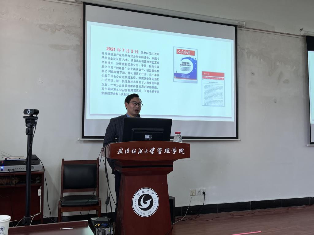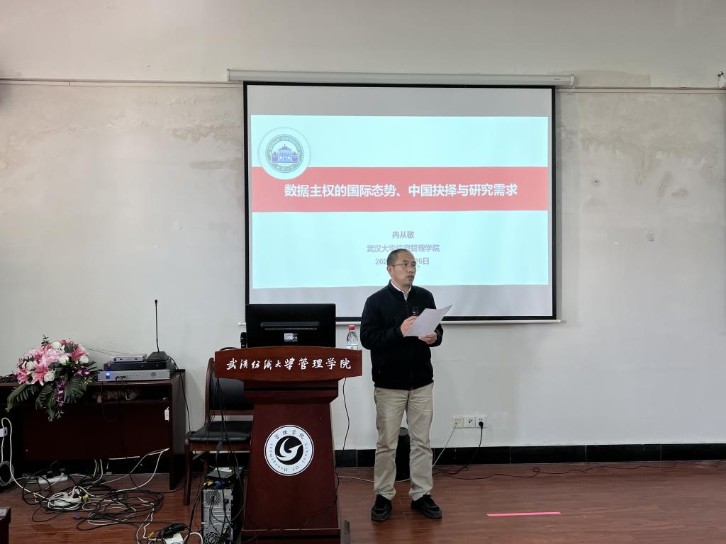 11月17日下午,武汉大学冉从敬教授受350vip浦京集团官网邀请作线下讲座,拟通过本次讲座为学院研究生分享数据主权的国际博弈与战略对策。本次讲座由350vip浦京集团官网院长吴金红主持,350vip浦京集团官网部分教师出席,全体研究生积极参会。