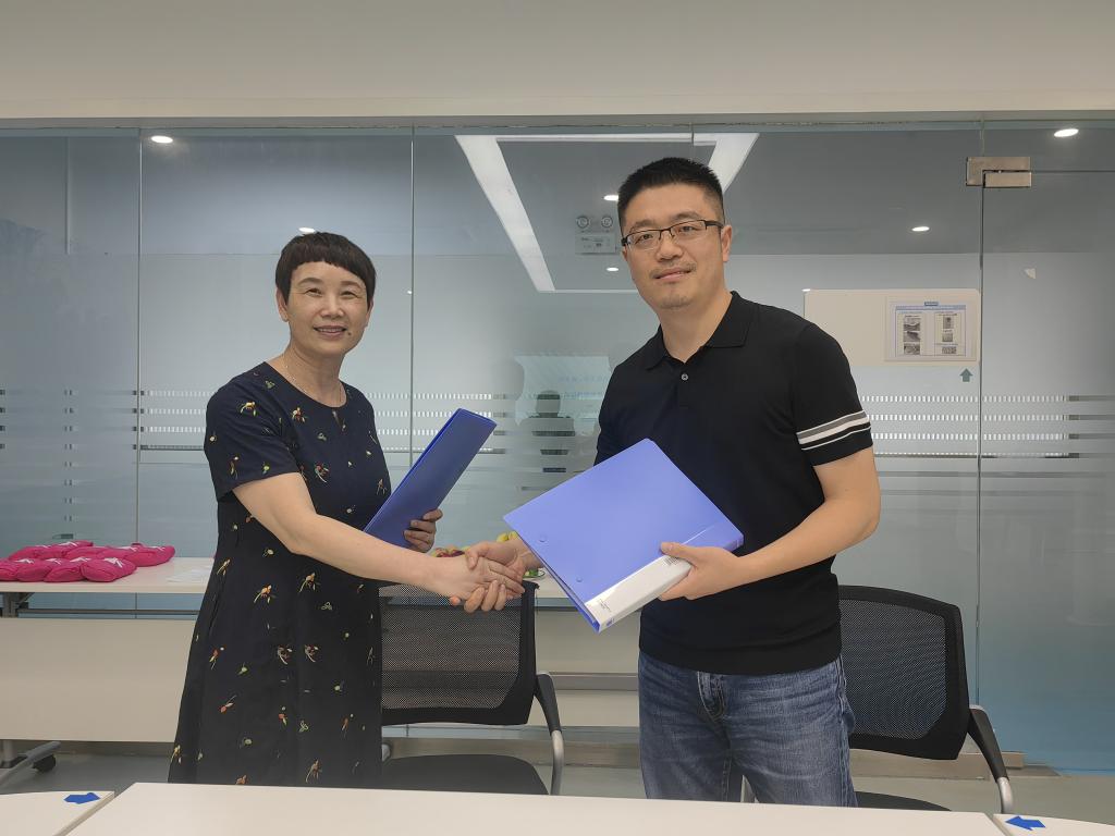 滕胜娟与王晓初分别代表校企双方签订了《校企合作框架协议书》